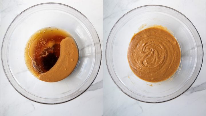 - In a large bowl, mix the peanut butter, honey, coconut oil, and vanilla until smooth.